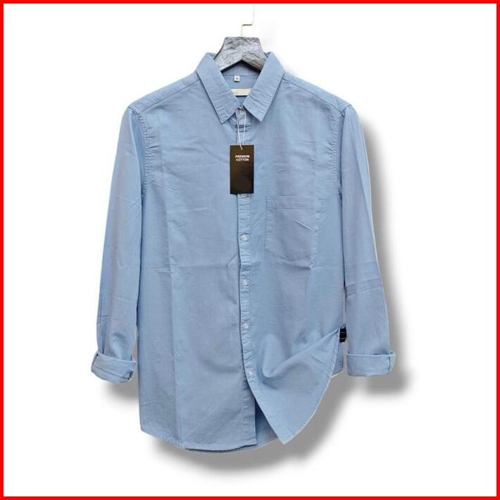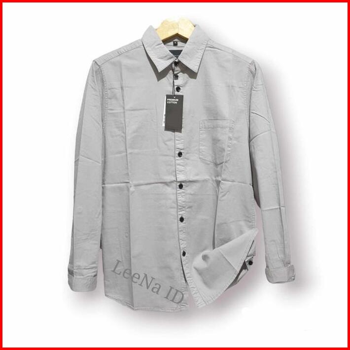Kemeja Casual Pria Panjang Premium Polos Katun Twill