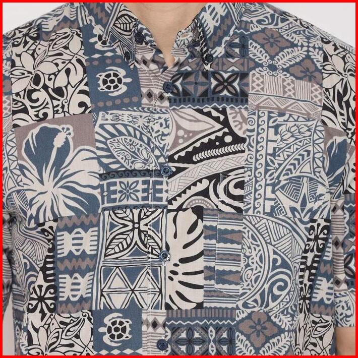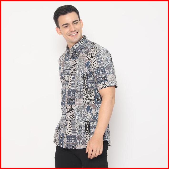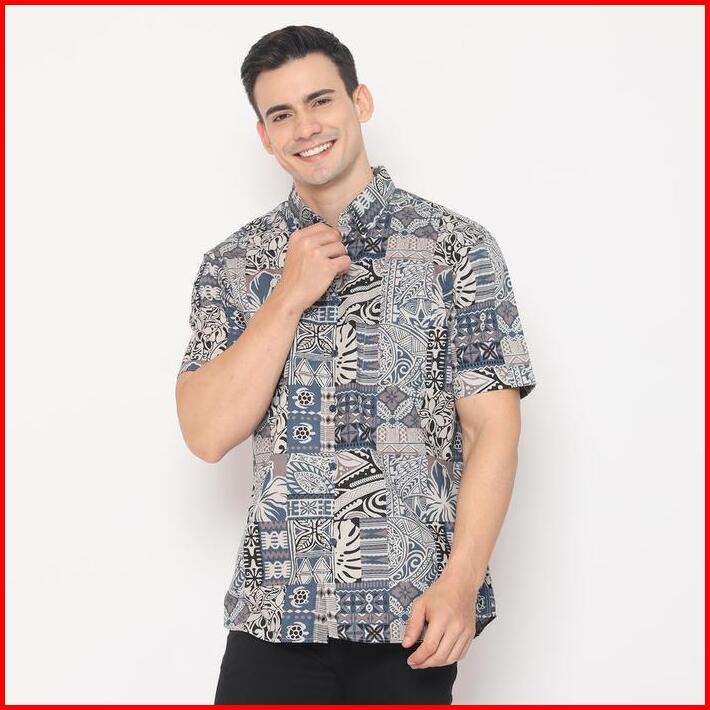 Platini Kemeja Hawai Pria Lengan Pendek Biru Abu 132106