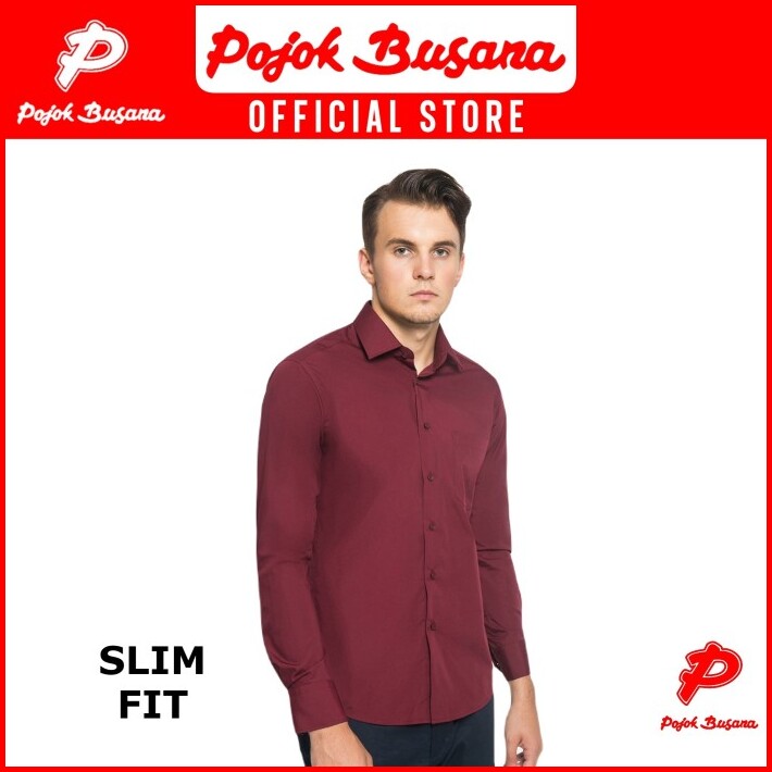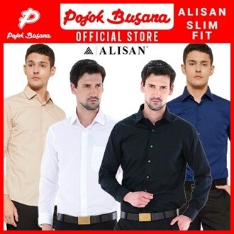 Pojok Busana Alisan Kemeja Panjang Polos Pria Slim Fit