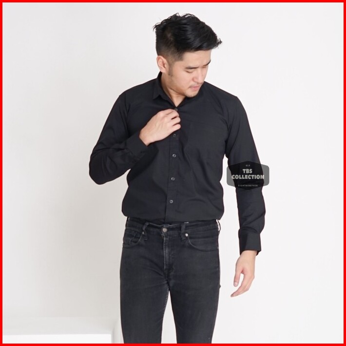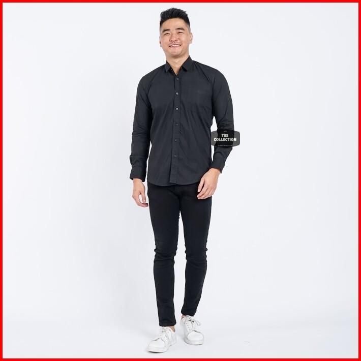 Baju Kemeja Hitam Polos Pria Lengan Panjang Big Size Xxl Casual Formal