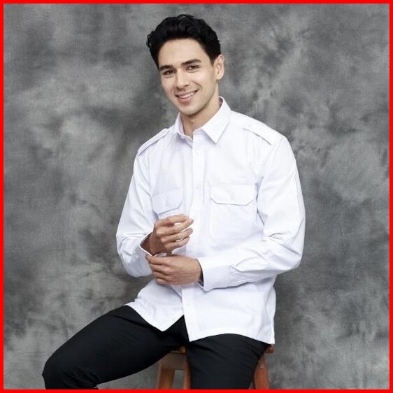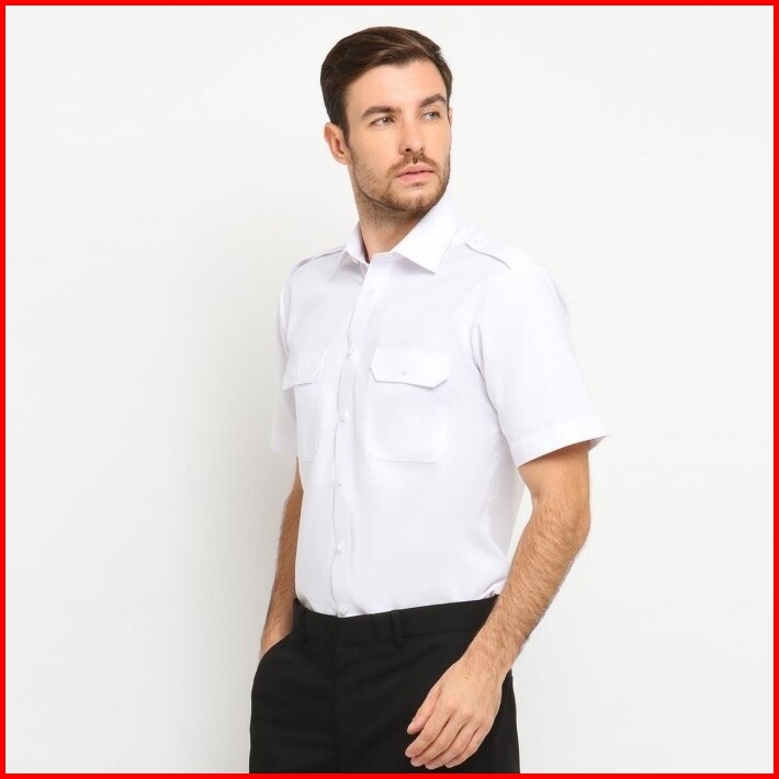 Kemeja Pilot Putih Pdh Pangkat Reguler Fit Lengan Pendek Polo Alessandro Seragam Pria