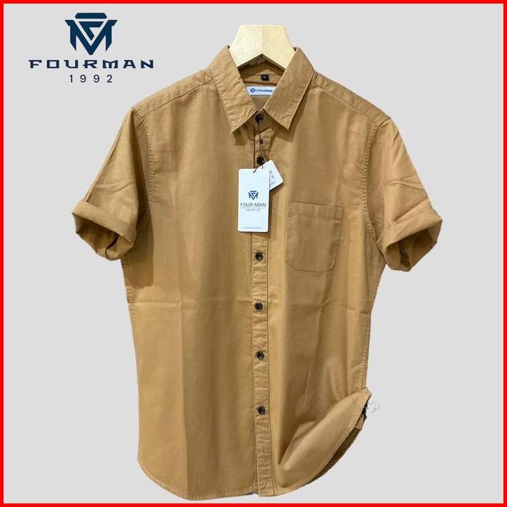 Fourman Kemeja Pendek Pria Kemeja Pendek Kerah Kemje Pendek Putih Bahan Katun Swiding Casual Cowok Formal Hitam Fit