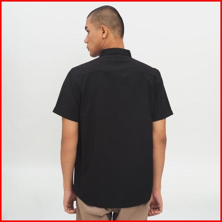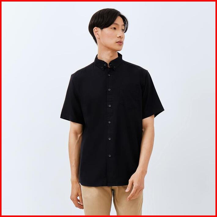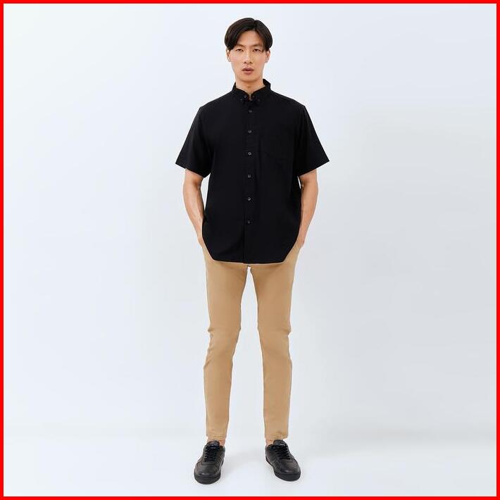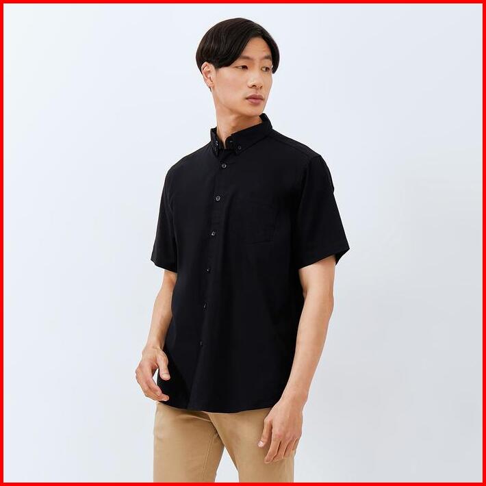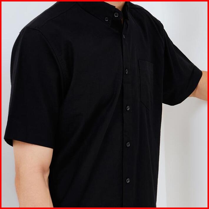 M231 Kemeja Pria Basic Polos Oxford Pendek Hitam 1457h
