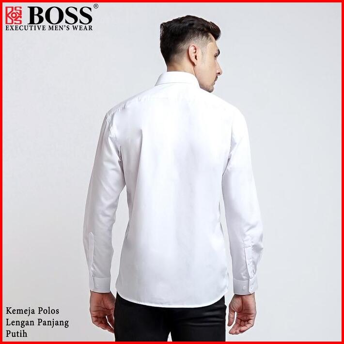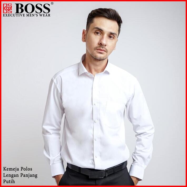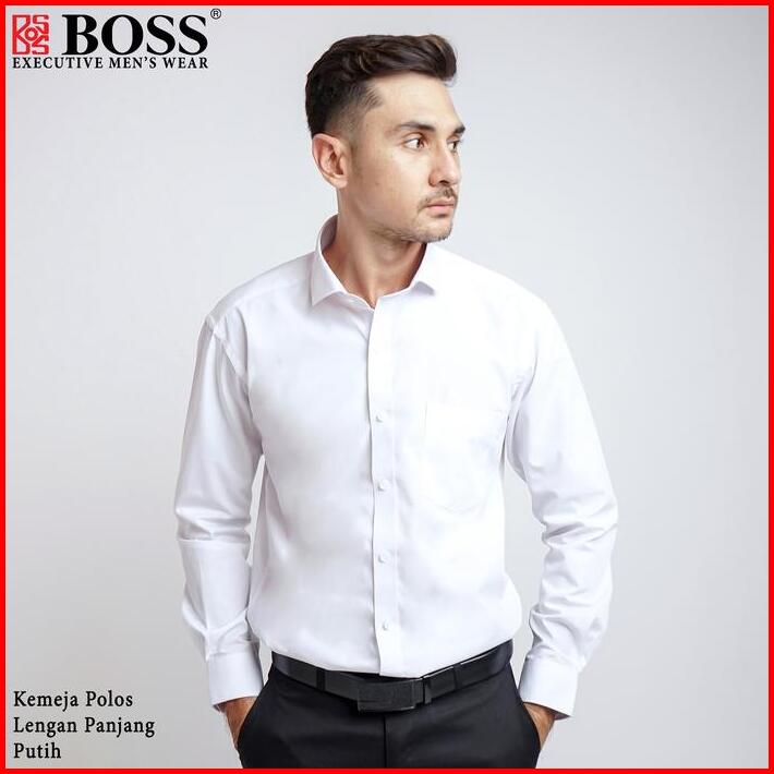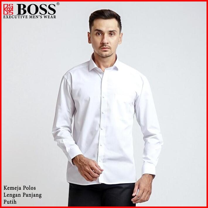 Boss Kemeja Polos Pria Lengan Panjang Slim Fit Putih