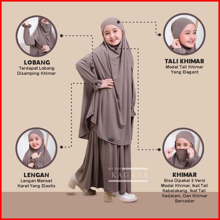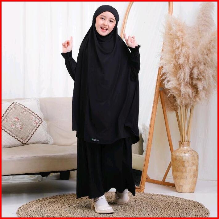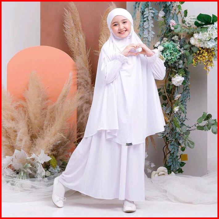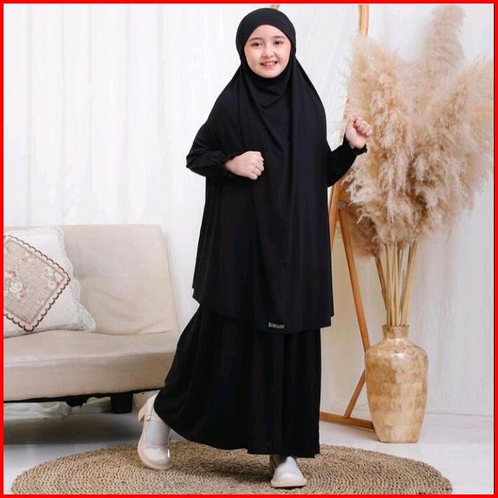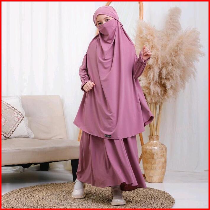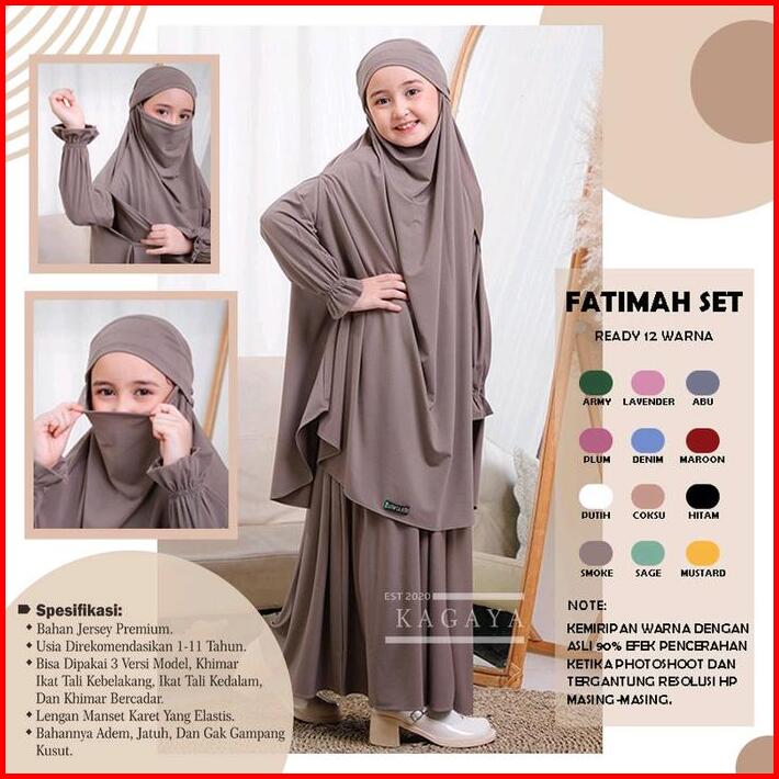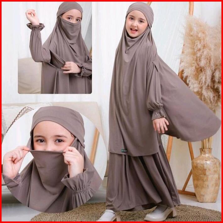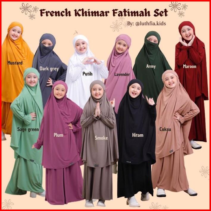 Gamis Anak Perempuan 1 Sampai 11 Tahun French Khimar Fatimah Set By Luthfia Kids Bahan Jersey Premium Polos Muslim Nyama