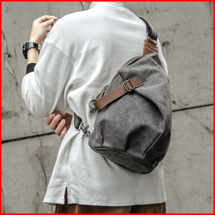 Tas Bahu Selempang Canvas Crossbody Sling Chest Bag Pria Retro Travel