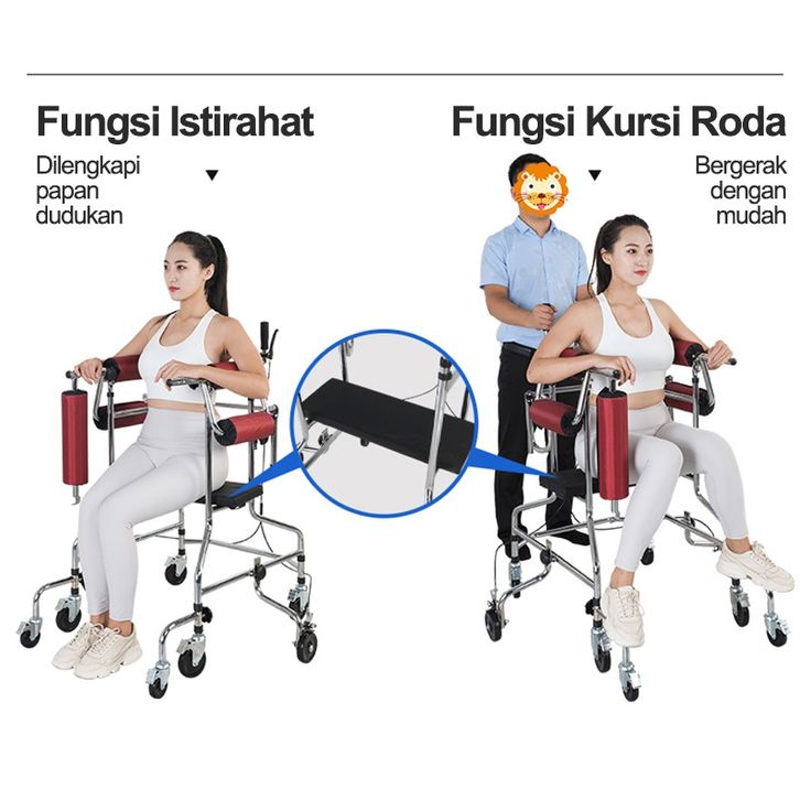 Rollator Walker Rehabilitasi 3-in-1 - Cocok Anak Cerebral Palsy 85-135cm & Dewasa Stroke/Lansia 145-180cm dengan Rem &