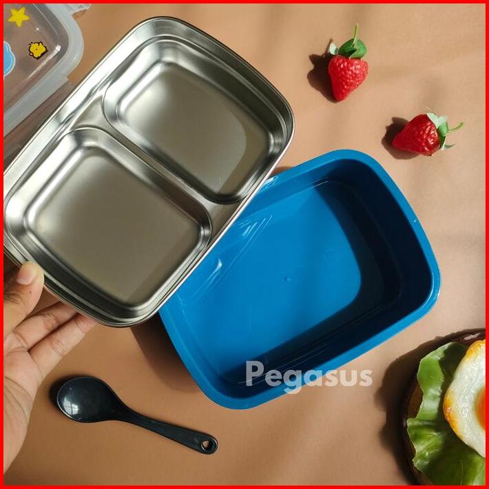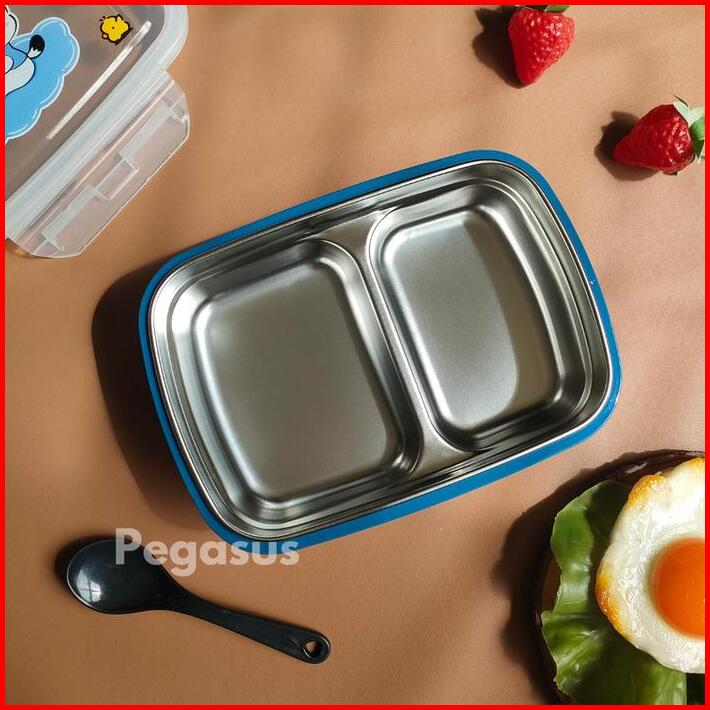Lb5198 Kotak Makan Sanrio Stainless Steel 2 Sekat Lunch Box Motif Kuromi Melody Free Sendok
