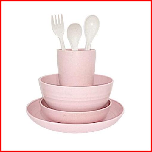 Deltagandum 7 Pcs Peralatan Makan Set Mangkuk Piring Sendok Peralatan Piring Makan Keluarga
