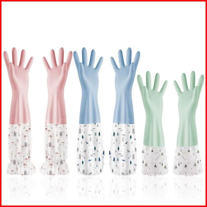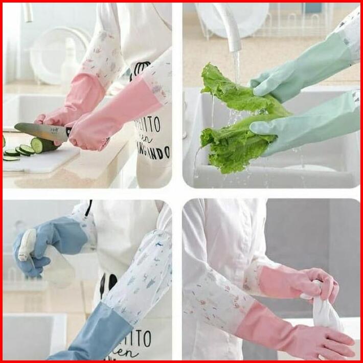 Sarung Tangan Panjang Cuci Piring Baju Pakaian Sarung Tangan Panjang Karet Latex Cleaning Minyak Hijau Biru Lengan Panja