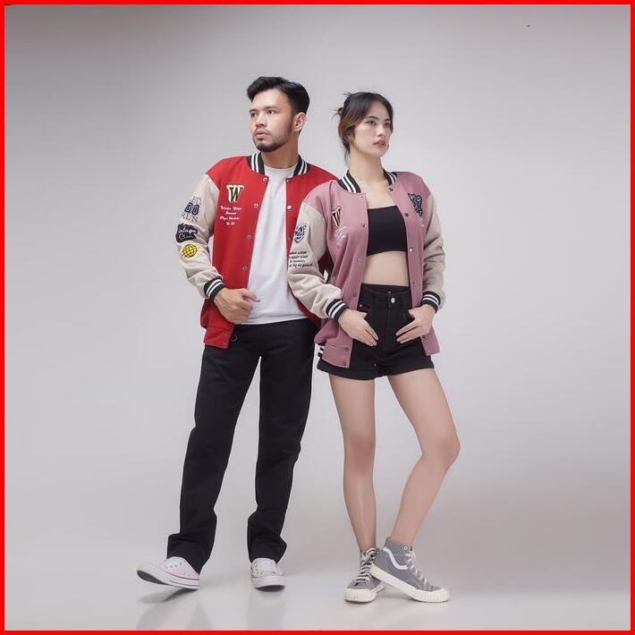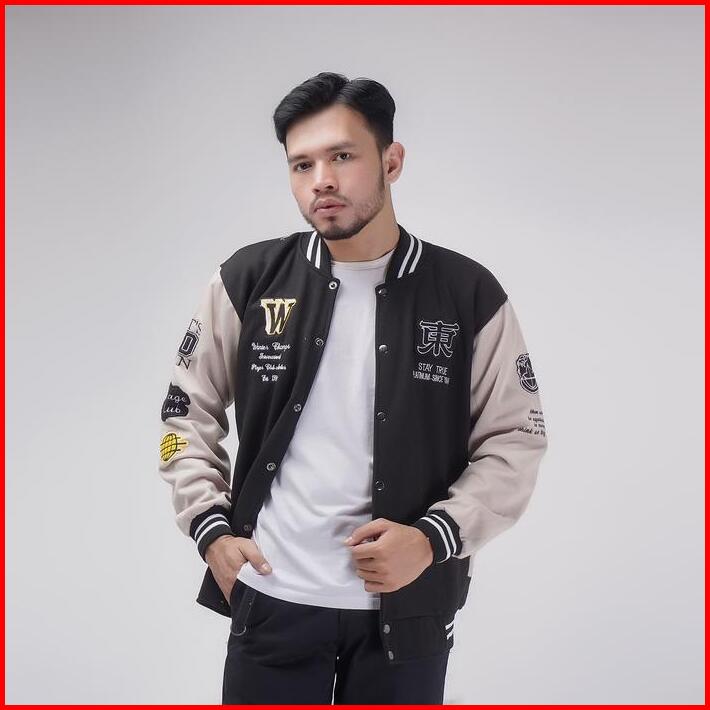 Thewanter Jaket Varsity Baseball Full Bordir Pria Wanita Dewasa Terbaru Fleece Keren Jaket Murah