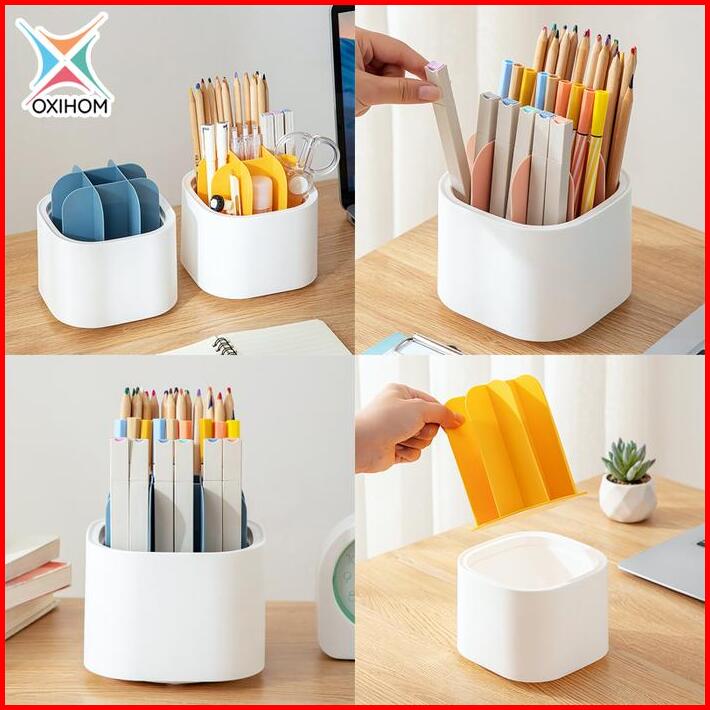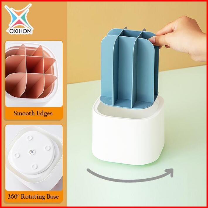 Oxihom Rak Putar Tempat Make Up Tempat Sendok Tutup Tempat Stationery Tempat Alat Dapur Penyimpanan Plastik