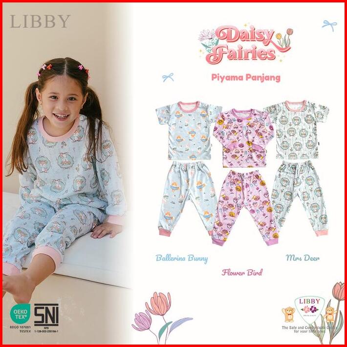 Libby Setelan Oblong Panjang Oblong Pendek Panjang Motif Anak Perempuan 1 Stel Daisy Fairies Heart Sorbet