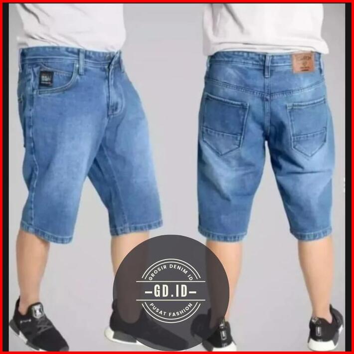 Gd.id Celana Jeans Pendek Pria Kancing Lihgt Blue Jumbo Denim Pendek