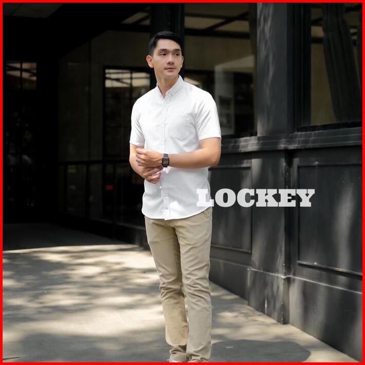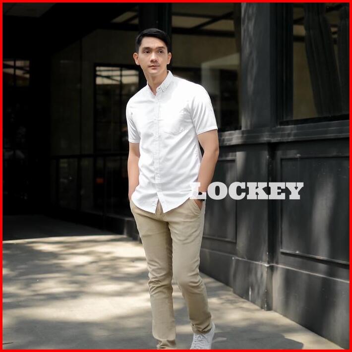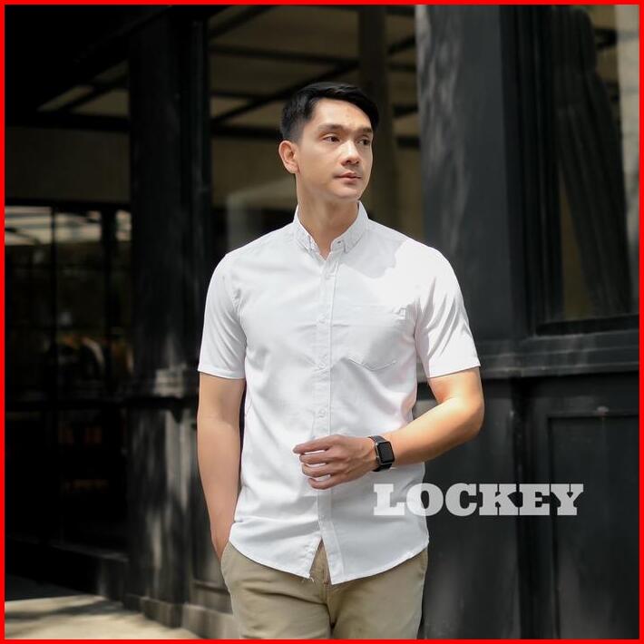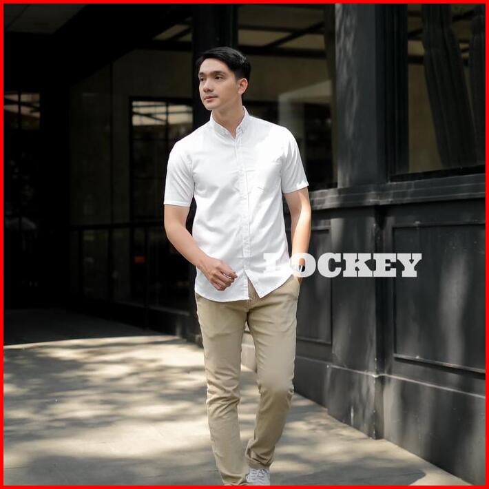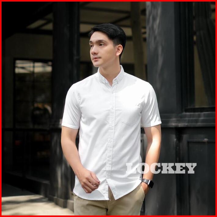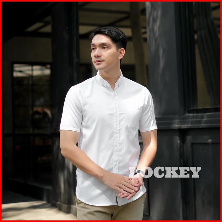 Kemeja Polos Pria Lengan Pendek Slimfit Kasual Bahan Katun Warna Putih