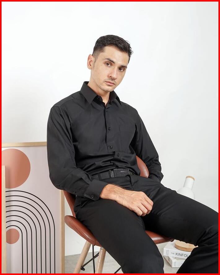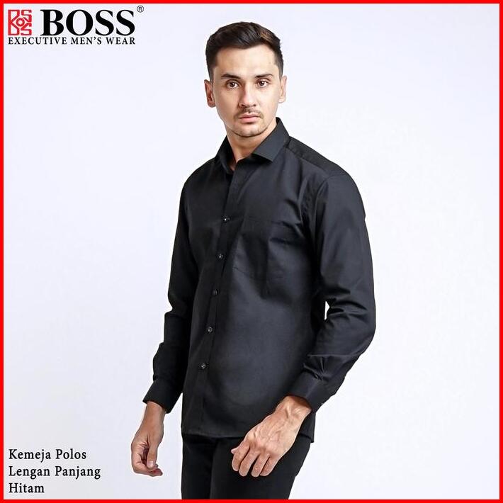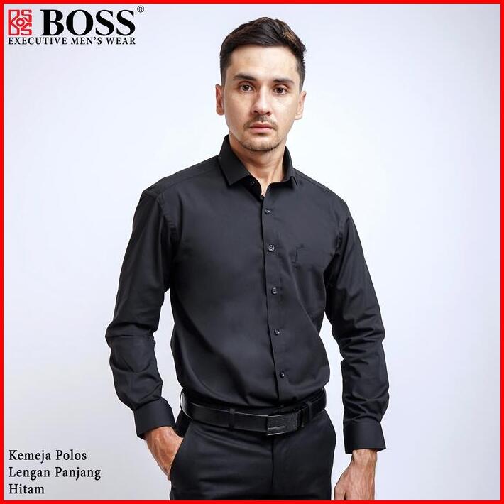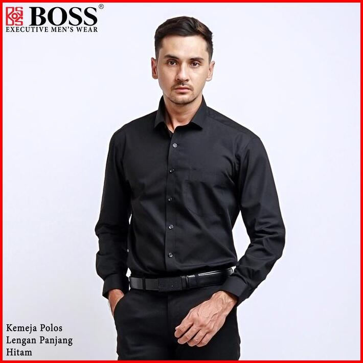 Boss Kemeja Polos Pria Lengan Panjang Slim Fit Hitam
