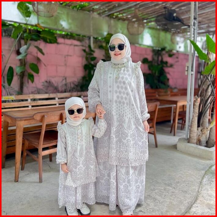Mimmi.idkimberly Dress Mommy Dan Baby Bahan Ceruty Babydoll Full Furing Kancing Depan Busui Gamis Anak Usia 2-9tahun Baj