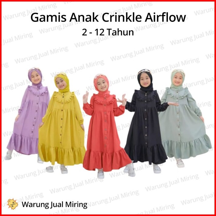 Gamis Anak Perempuan Crinkle Airflow Baju Dress Muslim Bahan Premium