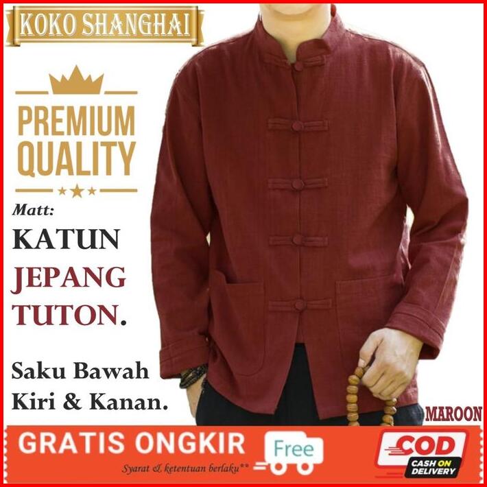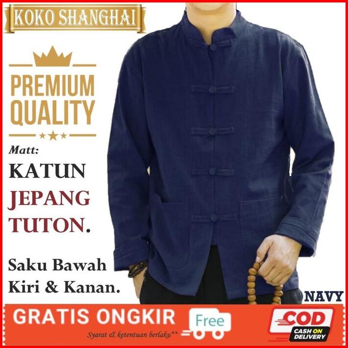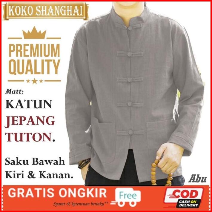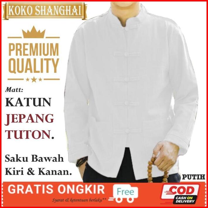 Koko Shanghai Premium Bahan Katun Jepang Import Pakaian Muslim Pria Baju Koko Kemeja Lengan Panjang Model Import Terbaru