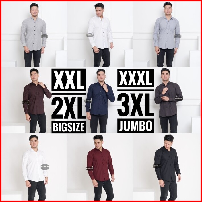 Kemeja Lengan Panjang Pria Polos Big Size Xxxl Triplexl 3xl Jumbo