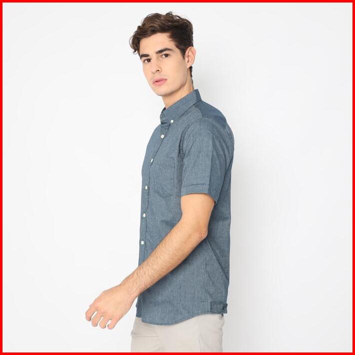 Platini Kemeja Pria Polos Lengan Pendek Katun Oxford Navy 1069