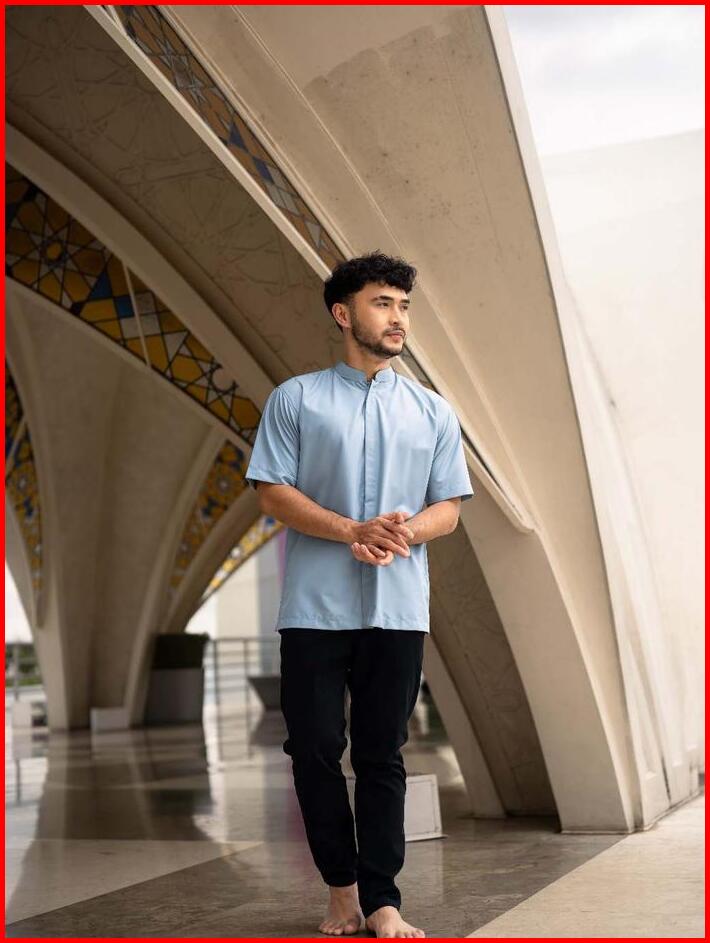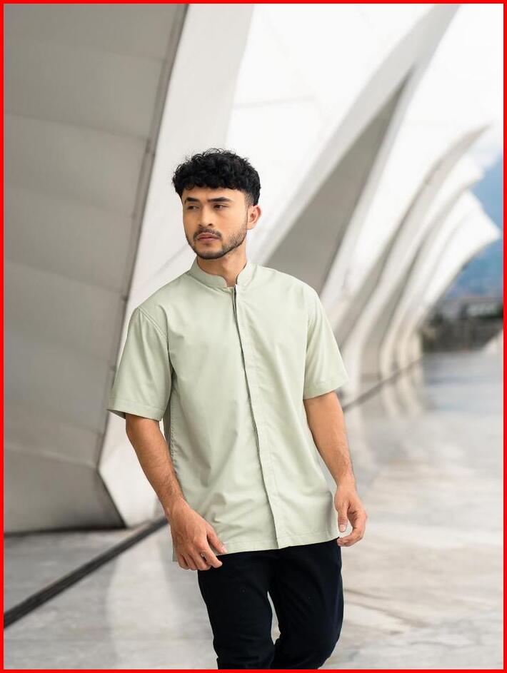 Maroko Kemeja Koko Kerah Shanghai Lengan Pendek Byblank Kemeja Koko Superfine Cotton Pria