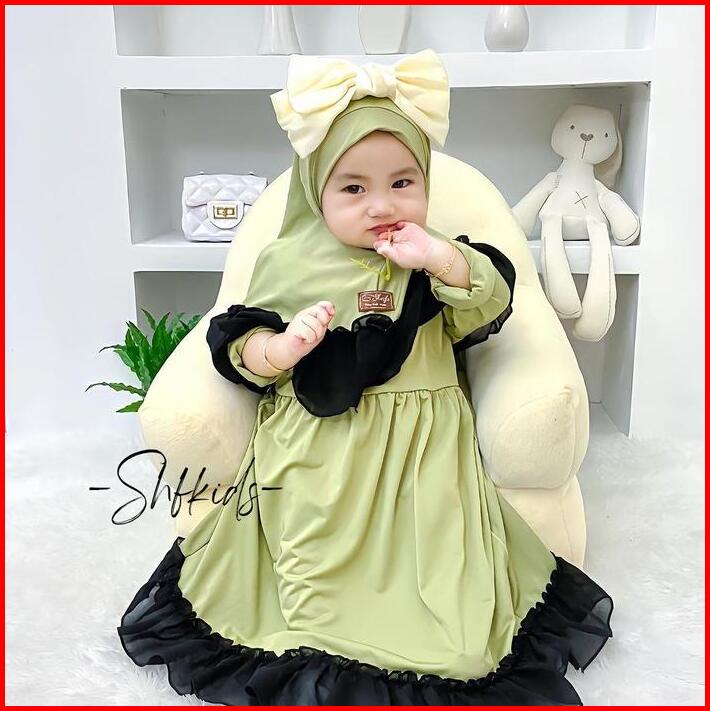 Gamis Bayi 0-1tahun Free Hijab Setelan Muslim Anak Perempuan Almeera Set Ceruty