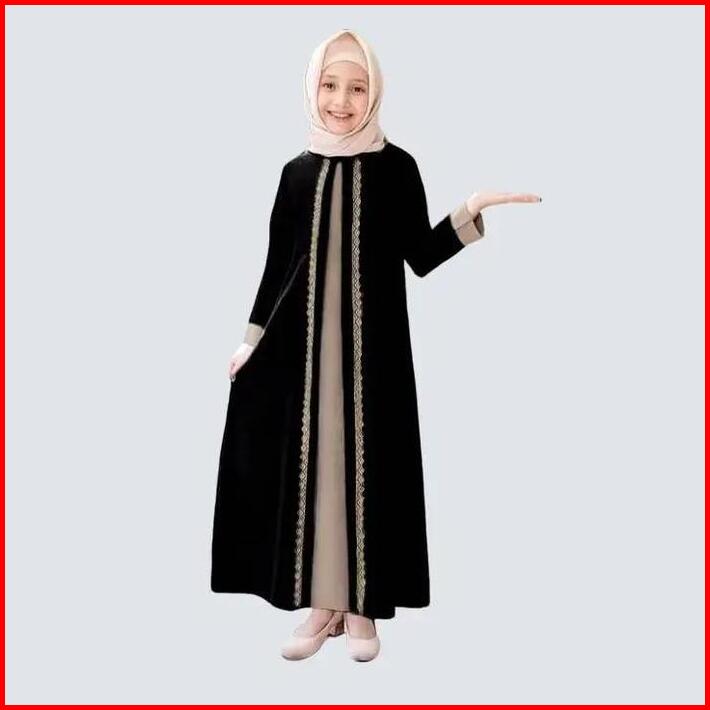 Gamis Abaya Anak Perempuan Remaja Terbaru 2024 Usia 6-15 Tahun Bahan Crinkle Airflow Premium Dress Muslim Tanggung Hitam