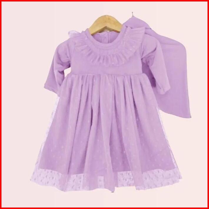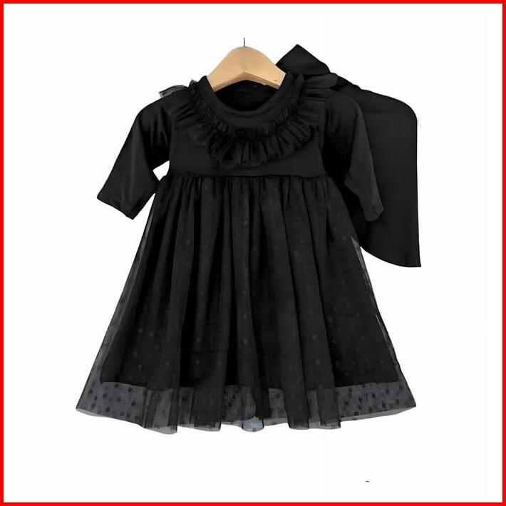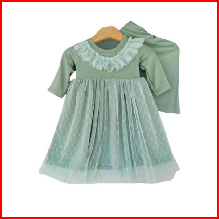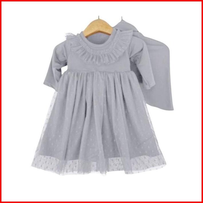 Gamis Hijab Tutu Tileu Dot Bayi Anak Balita Fashion Muslim Pakaian Perempuan Katun Polos Setelan Gaun Pesta 0-4 Tahun Pa
