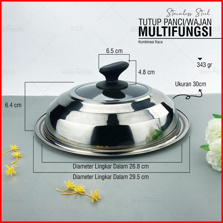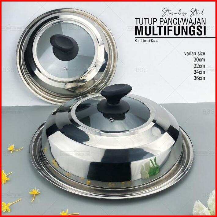 Tutup Panci Stainless Wajan Kuali Multifungsi 30cm 32cm 34cm 36cm Elegan Kombinasi Kaca
