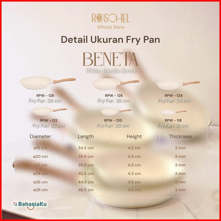Roschel Beneta White Marble Coating Non-stick Frypan 18 20 22 24 26 28 Cm Panci Wajan Penggorengan Fry Pan Anti Lengket