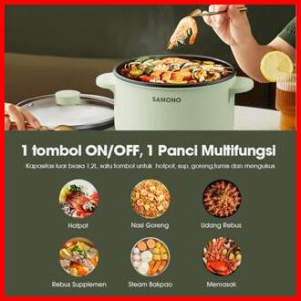 Samono 1.2l Panci Listrik Serbaguna Fry Pan Anti Lengket 600 Watt Material Food Grade Free Kukusan Sw-dg04