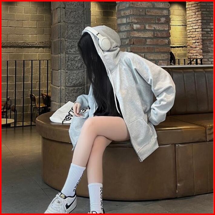 Hoodie Zipper Sweater Wanita Pria Size Xxl Jumbo Hoodie Polos Unisex Jaket Hoodie Oversize Tebal Fleece Lembut Panjang N