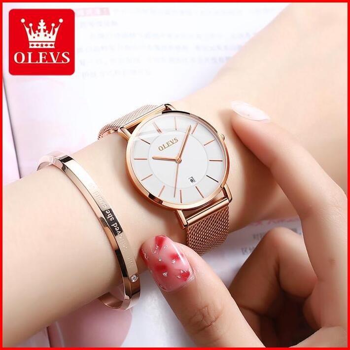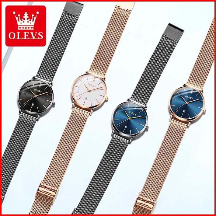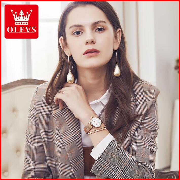 Olevs Jam Tangan Wanita Set Kalung Gelang Original Asli Untuk Tahan Air Rose Lady Girl Watch 5869 Arloji Kaca