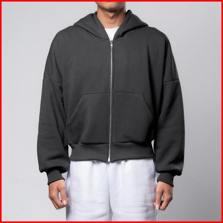Cottonsupply Zipper Crop Boxy Hoodie Heavyweight