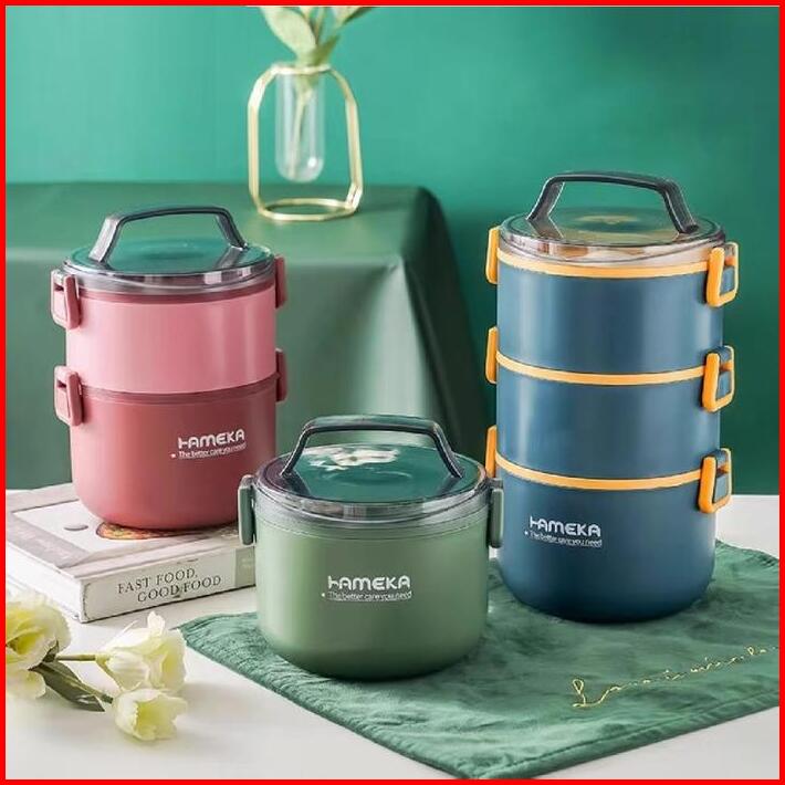 E011 Hameka Lunch Box Rantang Susun Tempat Bekal Makan Anti Tumpah 2 Dan 3 Susun Kitchenware