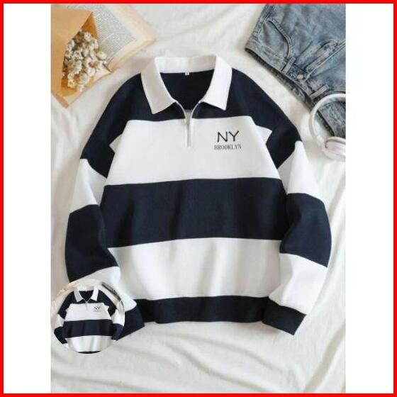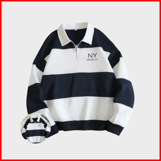 Sweater Rugby Hoodie Salur Terbaru Sweater Kerah Crewneck Ny Brklyn Pria Wanita Fleece Panjang Biru Hitam Navy Muda Polo