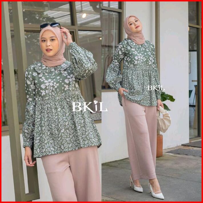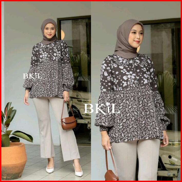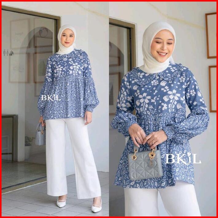 Batik Wanita Modern Atasan Kerja Kantor Elegan Katun Lengan Panjang Busui Balon