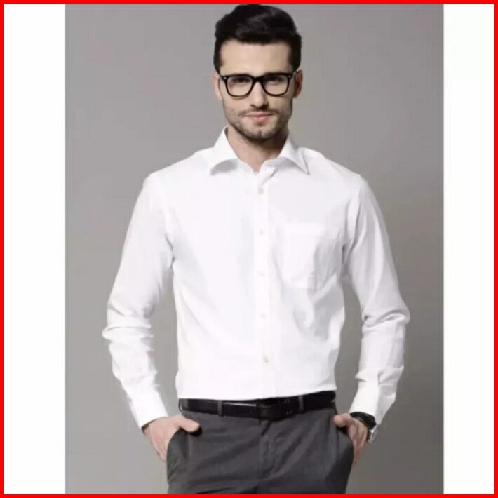 Kemeja Pria Putih Kerah Lengan Panjang Formal Standar S M L Xl