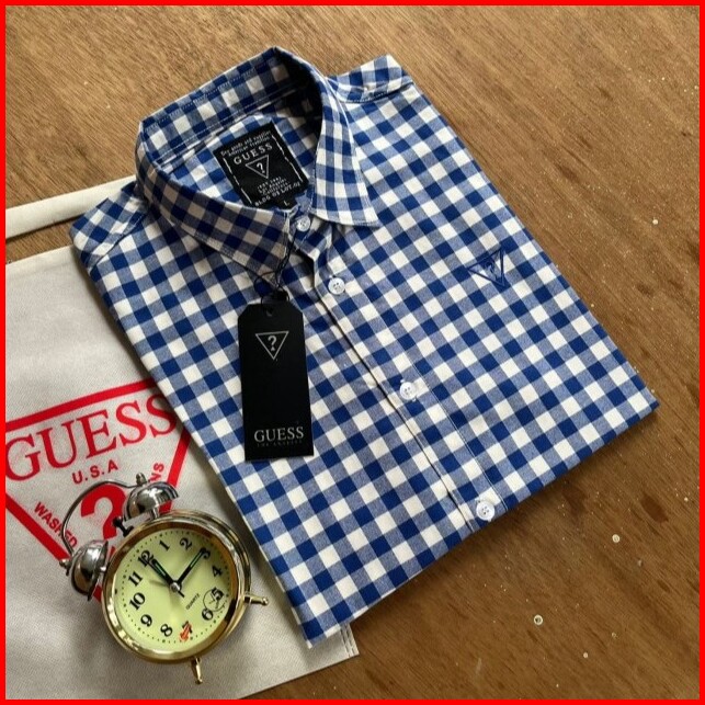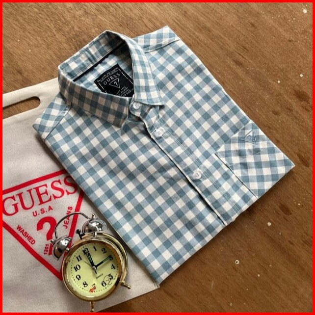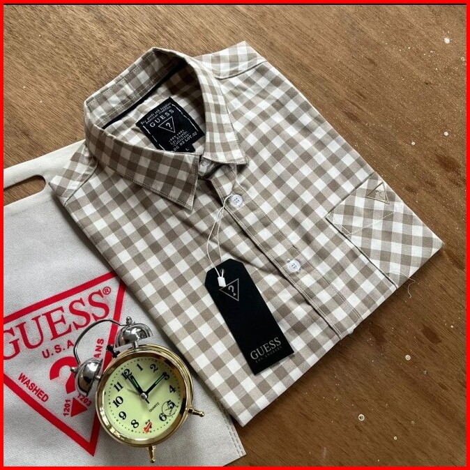 Kemeja Guess Import Premium Kemeja Formal Lengan Pendek Pria Kemeja Pendek Lengan Kasual Kemeja Guess Kotak-kotak