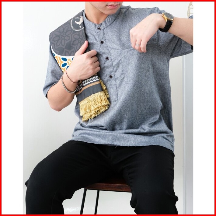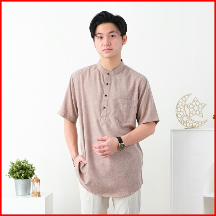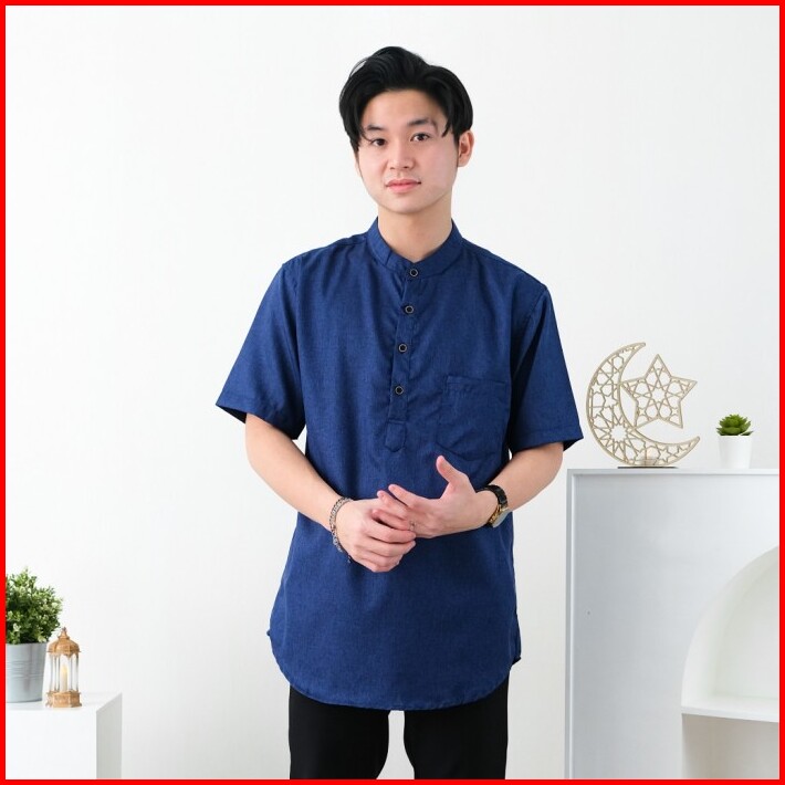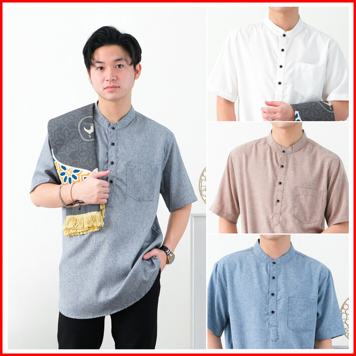 Baju Koko Pria Ankara Kemeja Kurta Polos Katun Madinah Lengan Pendek