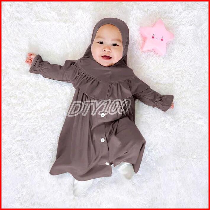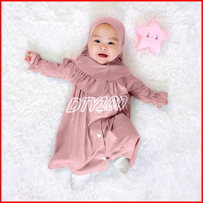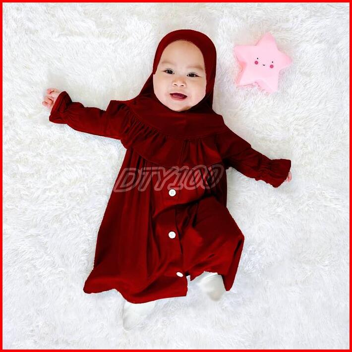 Dty100 Gamis Bayi Perempuan Newborn Bilqis 0-4 Bulan 6-12 Bulan 12-18 Bulan Baju Muslim Anak Free Hijab Krudung