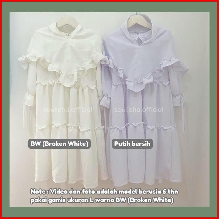 Soulleha Gamis Anak Putih Set Bergo Muslim Manasik Haji 1-11 Thn Crinkle Airflow Premium Gamis Anak Baju Manasik