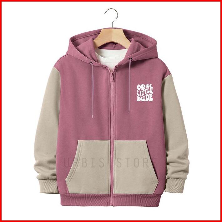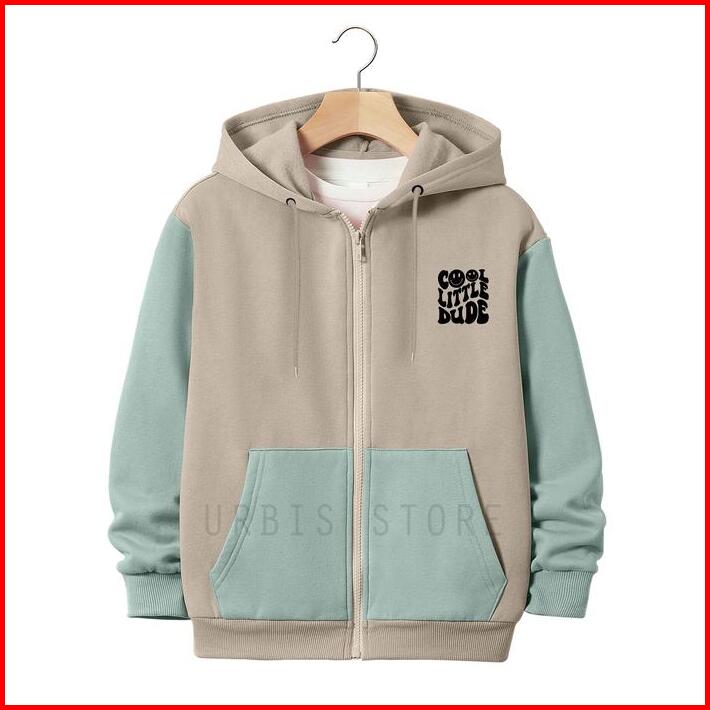 Jaket Hoodie Zipper Anak Laki-laki Perempuan Usia 3-13 Tahun Cool Little Dude Motif Kombinasi Warna Bahan Fleece Tebal P