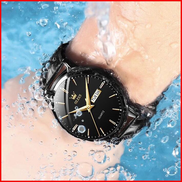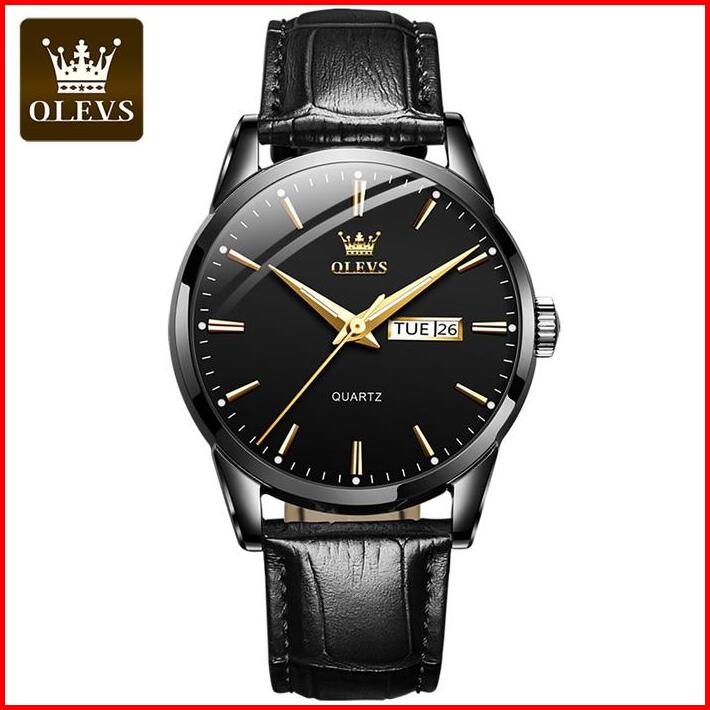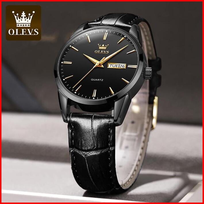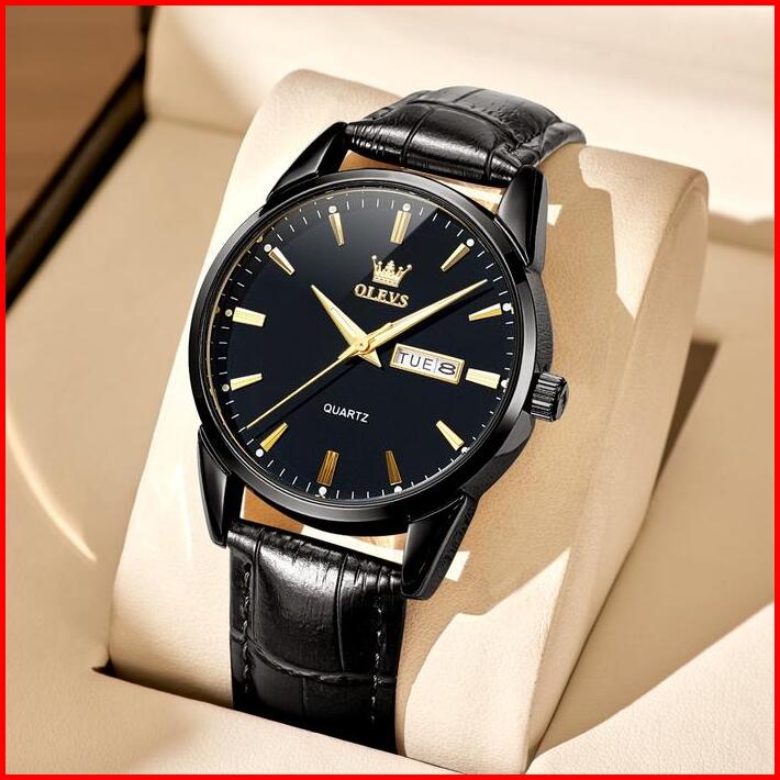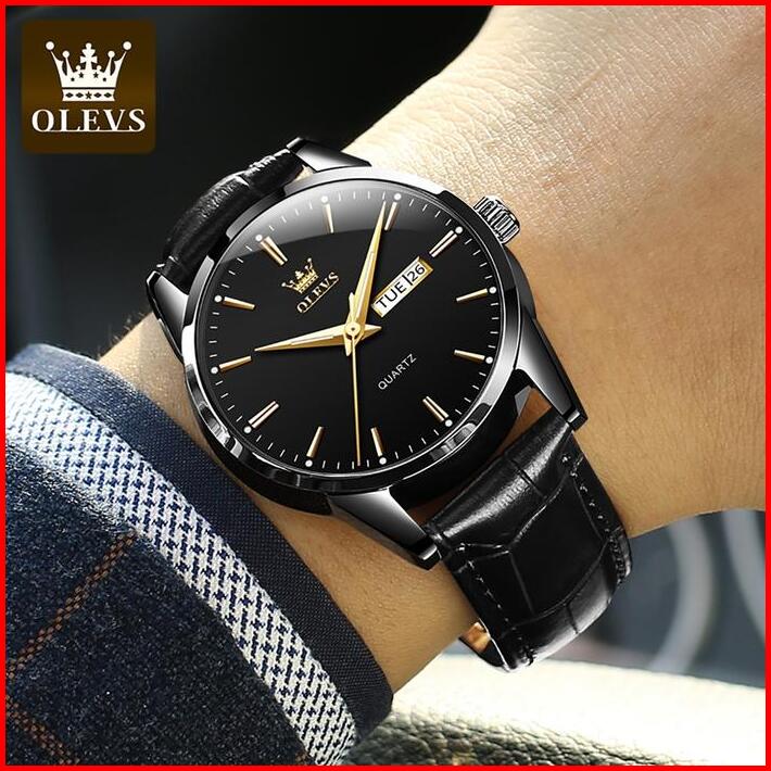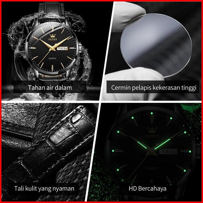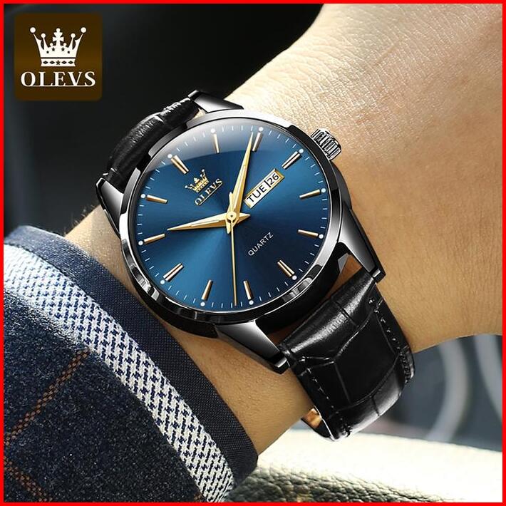 Olevs Jam Tangan Pria Anti Air Original Tahan Kulit Tali Laki Laki Cowok Kaca Analog Men Watches Hitam Biru Putih Busine