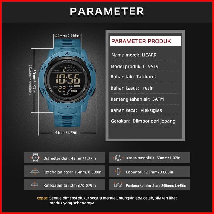 Licarr Jam Tangan Digital Pria Original Fashion Casual Sporty Dengan Tali Silikon Anti Air Man Watch 9519