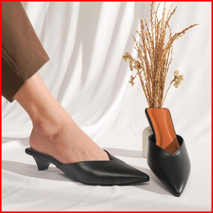Sepasang Collection Joy Sendal Mules Wanita 3 Cm Shoes Sandal Hak Lancip Flat Mules