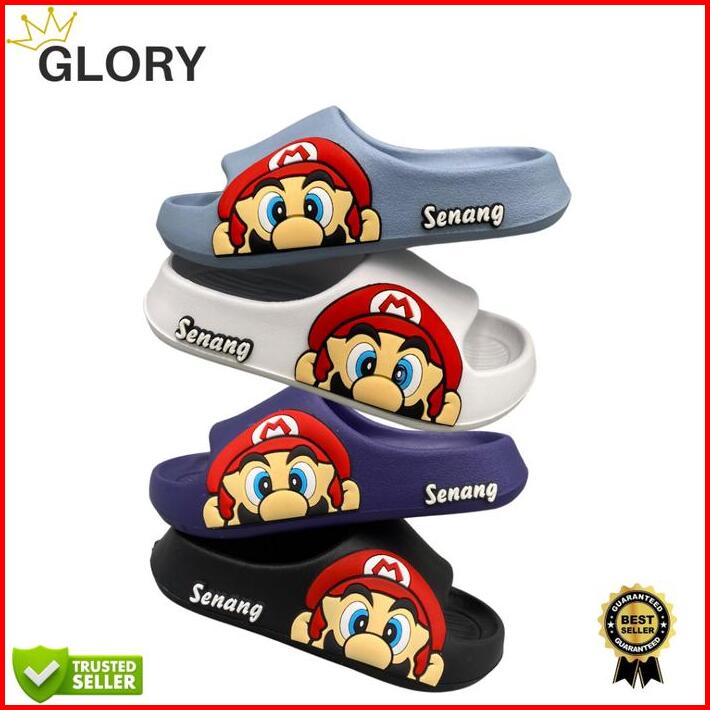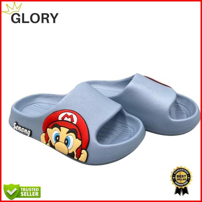 Sandal Slop Anak Anak Impor Super Mario Bross Keren Sandal Slip On Size 24-35 Bahan Eva Empuk 2318cd Motif Fashion Kaki