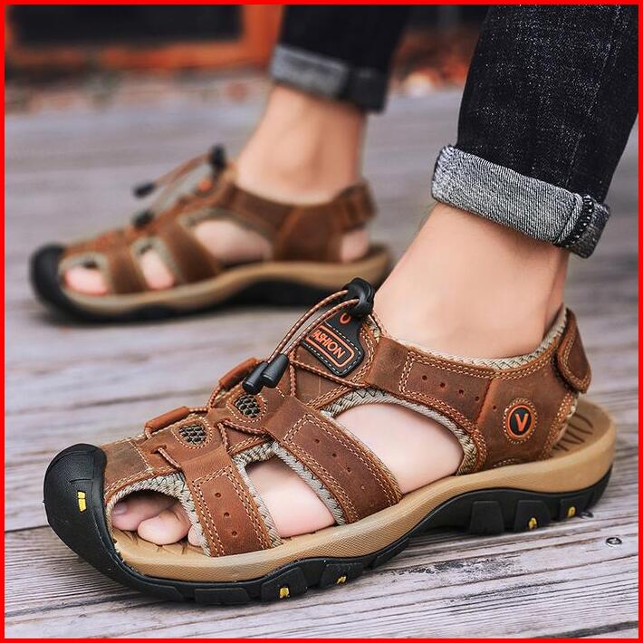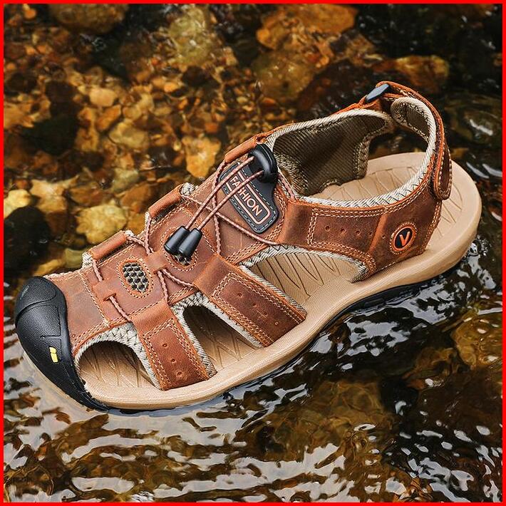 Prelesty Nyaman Kulit Sapi Asli Sandal Pria Gunung Hiking Trekking Outdoor Handmade Sepatu Keren Olahraga Waterproof 011