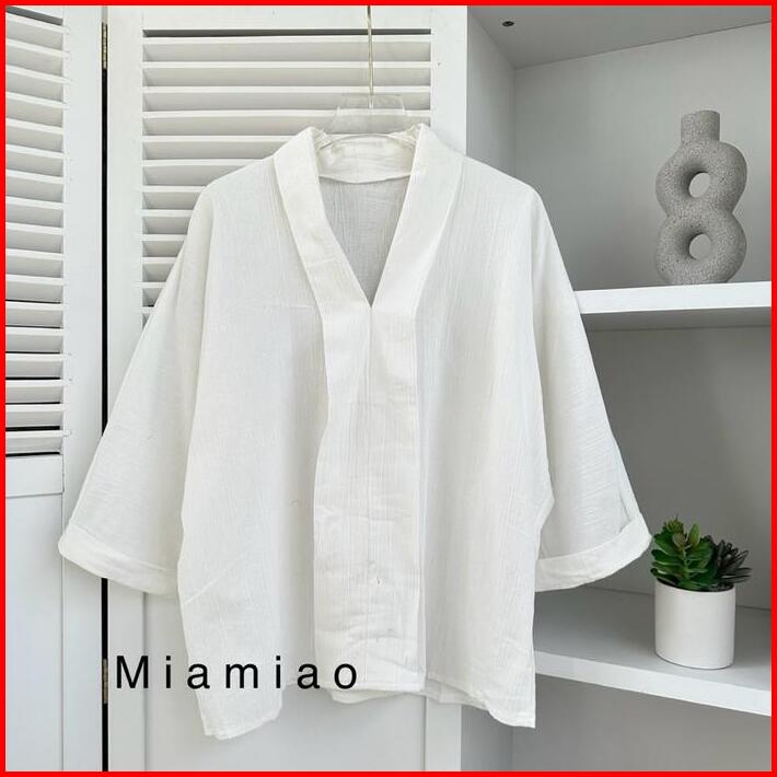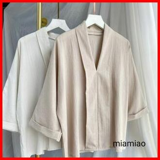 Adelia Linen Shirt Blouse Korea Wanita Atasan Kemeja Wanita